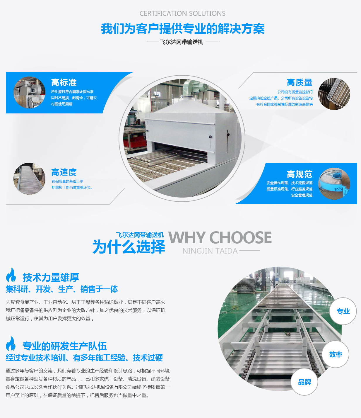 寧津飛爾達機械設(shè)備有限公司始建于1997年,位于山東省寧津縣經(jīng)濟開發(fā)區(qū)。本公司以生產(chǎn)制造金屬類網(wǎng)帶、鏈板、鏈條為主導(dǎo)產(chǎn)品。 建廠近20年,已和多家烘干設(shè)備、清洗設(shè)備、涂裝設(shè)備、食品公司、工業(yè)自動化達成長久合作伙伴關(guān)系。在保質(zhì)量、保工期的基礎(chǔ)上更把售后當(dāng)做重要環(huán)節(jié)。 本廠配件系列有:輸送網(wǎng)帶、輸送鏈板、輸送鏈條、乙型網(wǎng)帶、烘干網(wǎng)帶、清洗網(wǎng)帶、不銹鋼鏈板、沖孔鏈板、排屑鏈板。 設(shè)備系列:網(wǎng)帶輸送機、鏈板輸送機、烘干輸送機、清洗輸送機、轉(zhuǎn)彎輸送機。